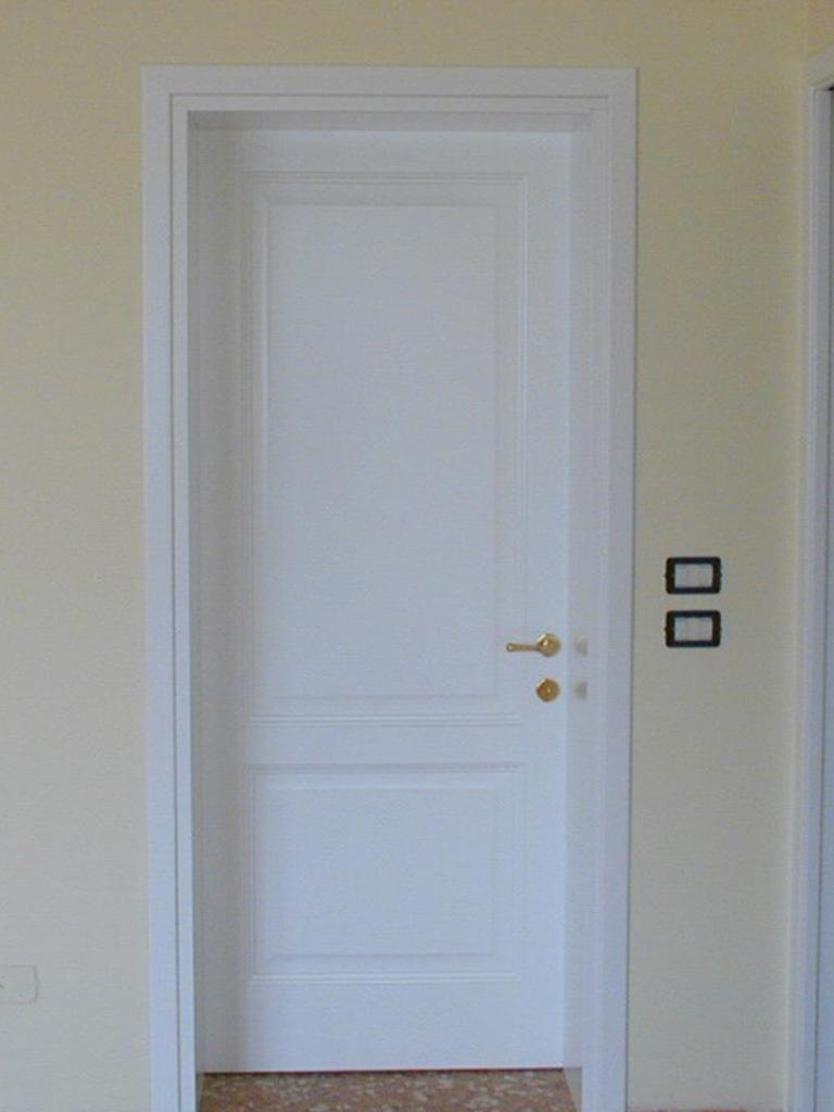 Porte in legno massiccio. La realizzazione di una o più specchiature, arricchisce ciascuna anta delle porte GIOTTO conferendovi uno stile classico e ricercato.